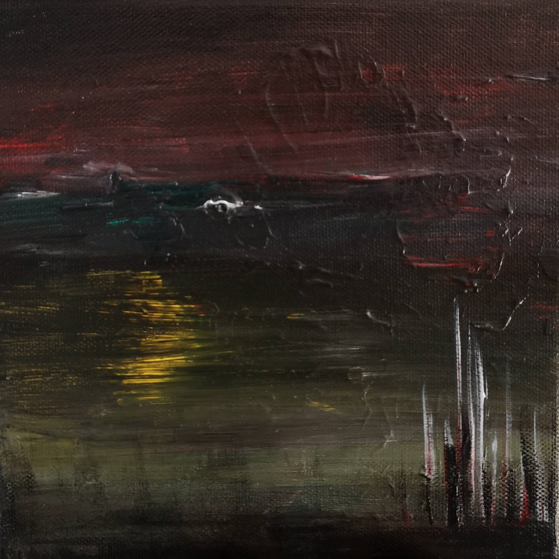 „Am See bei Nacht (2020)“ von Martin Hollwitz ist ein intensives abstraktes Werk, das die dunklen und geheimnisvollen Aspekte der Nacht einfängt. Der obere Teil des Bildes wird von tiefen Rottönen dominiert, die sich mit schwarzen Nuancen vermischen und eine dichte, fast bedrohliche Atmosphäre erzeugen. Diese Farbwahl verstärkt das Gefühl von Dunkelheit und verborgenem Geheimnis, während der Himmel in düsteren, fast unheimlichen Farben über das Bild zieht.